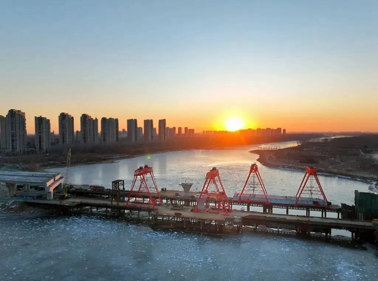 1月15日拍摄的建设中的厂通路潮白河大桥(无人机照片)。新华社发