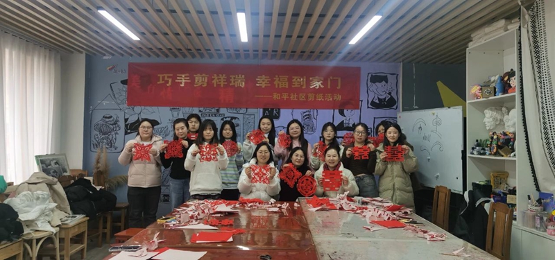 盛世龙腾庆新年,春联送福祈平安。1月19日上午,和平社区联合银河画室开展迎新春剪纸送福活动,为在场的居民详细讲解中国传统剪纸、写福的历史、形式和文化内涵等,并在现场展示优秀的文艺作品,引导居民了解、学习传统文化技艺,感受传统文化的魅力。随后的自由创作阶段,活动现场氛围十足,每个人都沉浸在剪纸、写福的乐趣中,充分感受中华优秀传统文化的魅力。