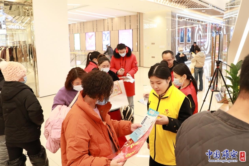 志愿者为过往群众讲解发放安全宣教资料。中国雄安官网发