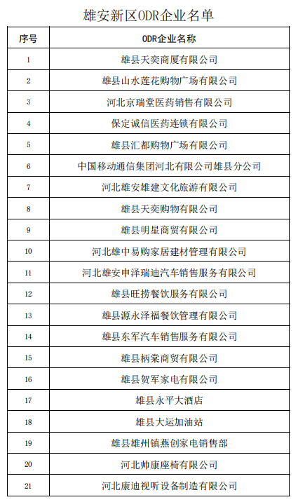 附:《雄安新区ODR企业名单》