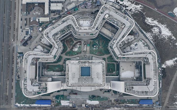 这是位于雄安新区启动区内的中国卫星网络集团有限公司总部大楼建设现场(2024年1月31日摄,无人机照片)。新华社记者 牟宇 摄