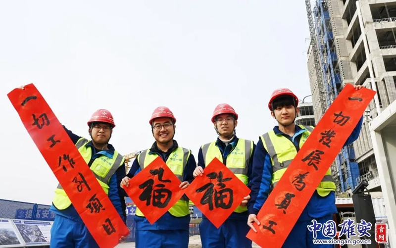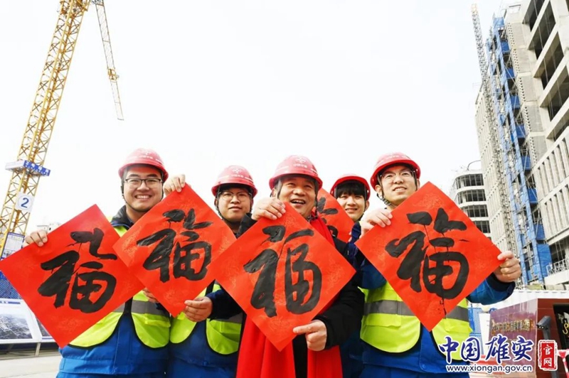 为给新区一线建设者献上最美好的祝福,雄安新区特举办“金龙献瑞·送福迎春”文化公益活动,组织新区优秀书法家十余名,通过公益活动小分队的形式,深入雄安新区建设一线,开展送福迎春、送春联下基层公益活动,用一幅幅寓意吉祥的春联,一张张喜气洋洋的“福”字,化作最真挚的新春祝福献给新区一线的建设者们。