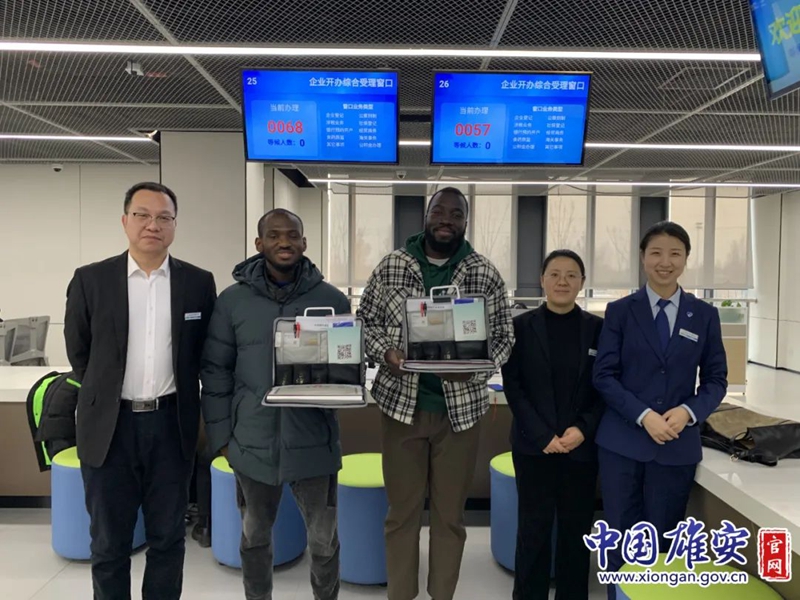 中国雄安官网2月9日电 “雄安新区的企业登记速度快,服务好,还送大礼包,非常棒,very good!”来自加纳、尼日利亚的两位国际友人注册完成雄安探索国际贸易有限公司、雄安法马物流有限公司后,收到企业开办大礼包非常开心,对雄安政务服务中心办事大厅的服务竖起大拇指。