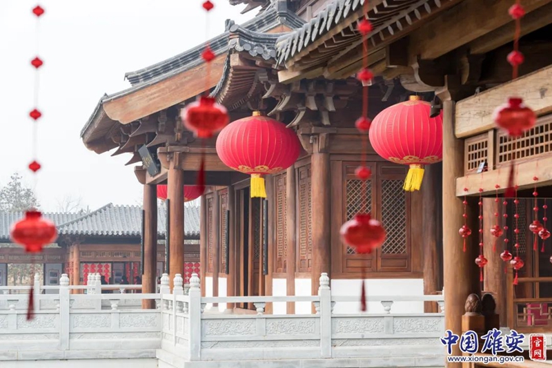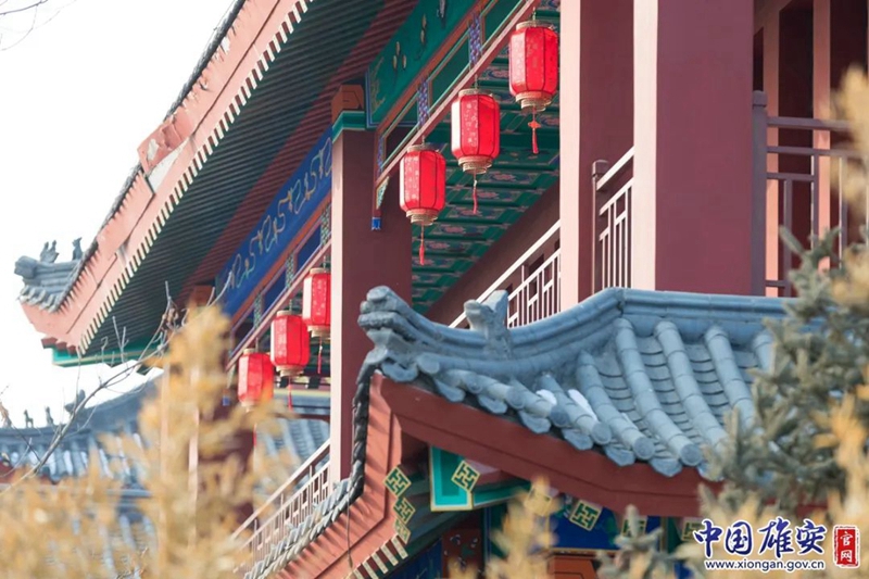 悦容公园南苑仿古建筑挂上了红灯笼,年味十足。中国雄安官网李鑫 摄