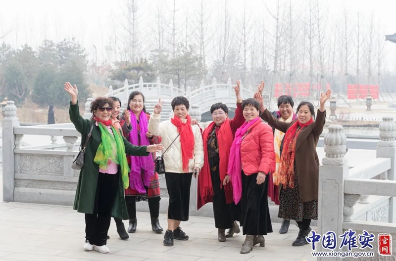 在悦容公园,游客合影留念。中国雄安官网李鑫 摄