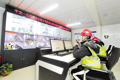2月16日,北京轨道交通22号线河北段盾构监控室内,值班人员正在查看各盾构区间工作情况。河北日报记者刘英 摄