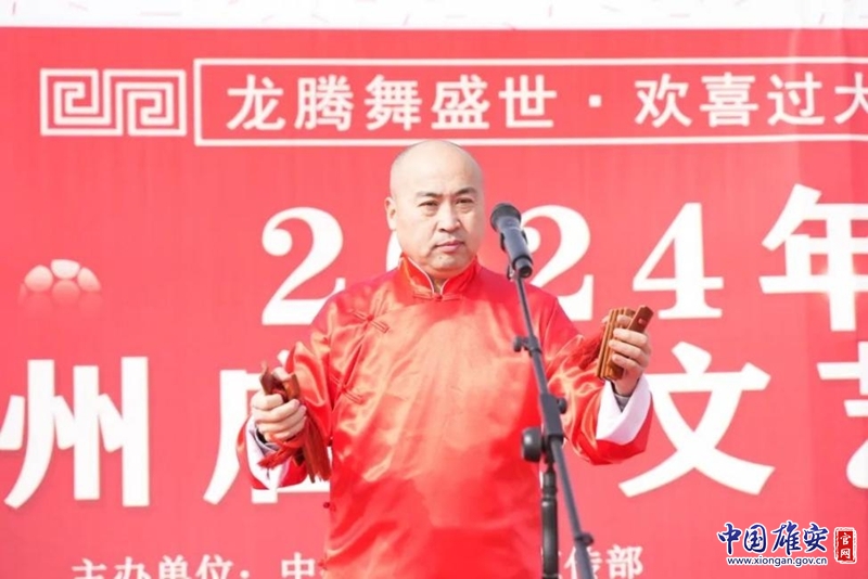 开幕式上,由秧歌、大鼓、吵子会、小车会等非遗民俗表演者组成的巡游队伍穿梭在鄚州大庙的前街中,形成一道亮丽的风景线。随后,在大庙西侧广场,雄县2024年春节惠民演出鄚州庙会节目表演进行的如火如荼,歌曲《幸福永远》、快板《哪吒闹海》、京东大鼓《唱雄安》、女声独唱《追梦》、相声《地里图》、河北梆子《大登殿》等各类节目轮番上演,为广大游客呈现了一场精彩绝伦的文艺表演。