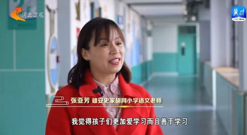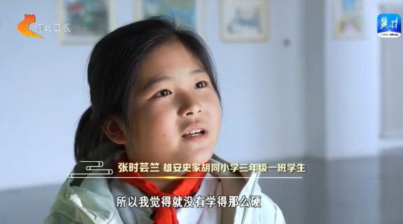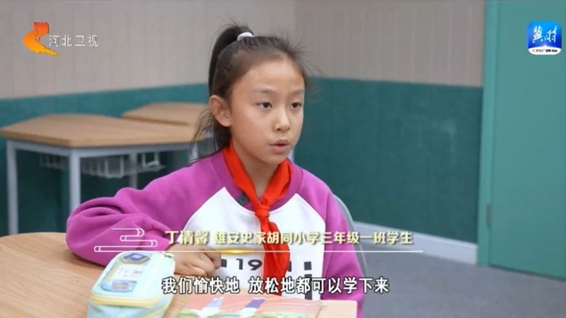 雄安史家胡同小学三年级一班学生 张时芸竺:在这个学校也比之前的学校互动比较多,然后在互动同时也让我们学到了知识,所以我觉得就没有学得那么硬,就学得没有那么僵硬,就是玩着学完的那种感觉。