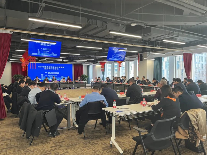 会议传达了中国人民银行河北省分行2024工作会议精神,通报了2023年雄安新区金融和经济运行情况,介绍了2024年重点项目建设规划,并展示了科技金融产业展示中心建设进程。会上多家金融机构代表发言分享经验。