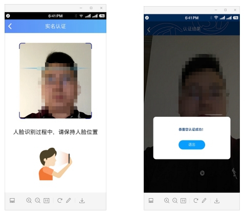 第八步:人脸识别通过,提示认证成功后,在“认证历史”可以查看已认证的记录。