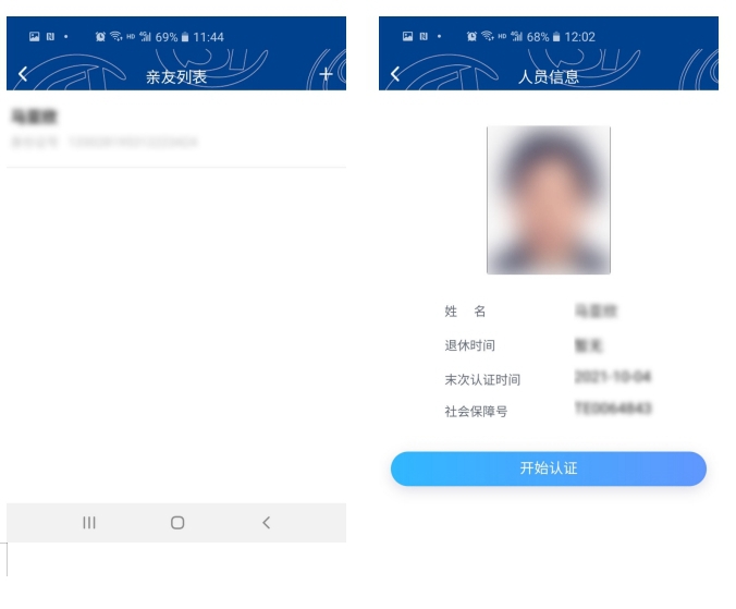 已经新增成功的亲友,直接点击列表中姓名,即可进入认证界面,点击开始认证,按提示操作,即可完成认证。