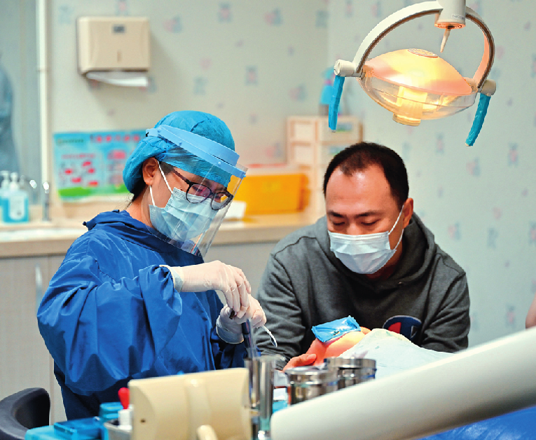 在北京儿童医院保定医院口腔诊室,来自北京的专家正在给患儿诊治(2024年2月1日摄)牟宇摄/本刊
