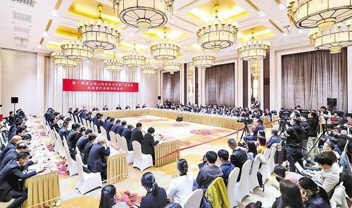 3月6日上午,出席十四届全国人大二次会议的河北省代表团举行开放团组活动。河北日报记者赵海江 摄