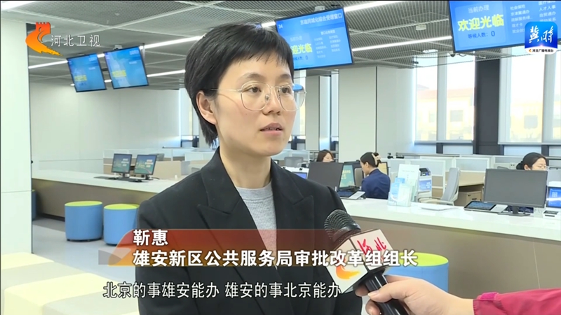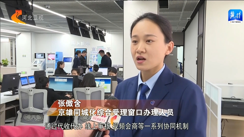 京雄同城化综合受理窗口办理人员 张傲含:通过代收代办、线上审核、视频会商等一系列协同机制,为办事人员提供京津冀加雄安政务服务事项跨省通办服务。同时我们还为疏解企业和疏解人员提供社保医保、雄安一卡通、雄才卡,就业创业、积分落户、资质互认等一站式服务。