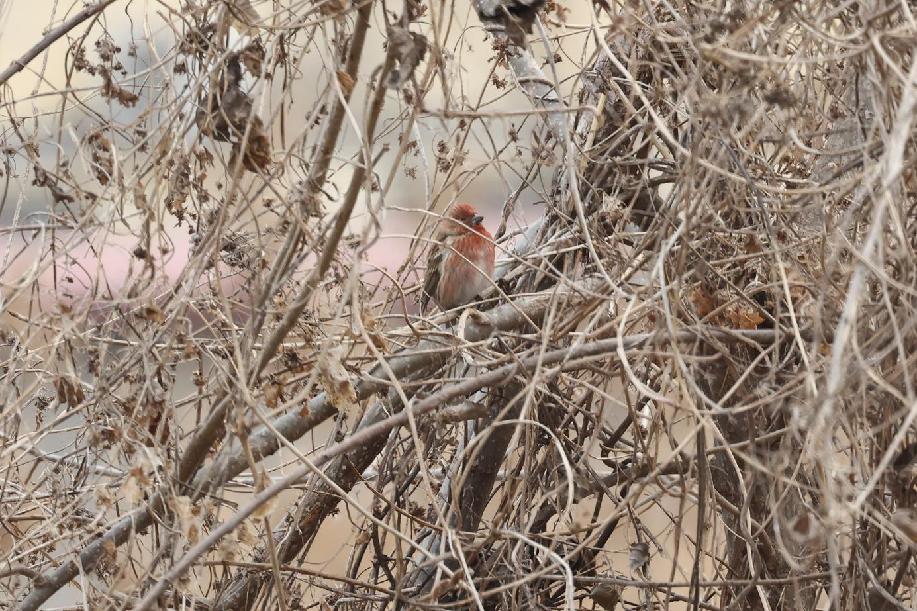 北朱雀,国家二级重点保护动物,额和头顶前部珠白色具窄的粉红色羽缘,在前额、喉具白色鳞状斑,头顶后部、枕、头侧和后颈粉红色。胸、胁部具鲜亮的粉红色,腹中央白色。常栖息于温带疏林、针叶林和灌丛,喜开阔而少树的林灌环境。集小群觅食于低矮灌丛和地面,常和其他小型鸟类混群。性机警,善藏匿,平时多站在高大树木顶枝上或灌木上,觅食时才下到草丛或灌丛中,一有惊扰,立刻全部飞走。常见冬候鸟,见于东北、华北、华东和华中地区,迁徙季节也见于新疆北部。