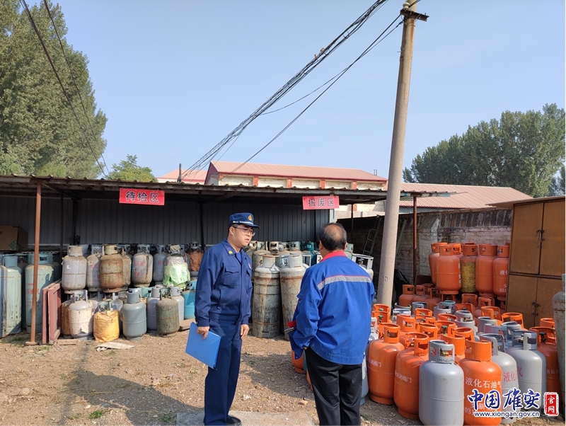 检查人员对燃气充装场所进行检查。雄安新区消防救援工作筹备组供图