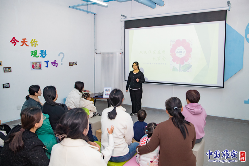 志愿者为孩子们讲解《小种子》绘本故事。中国雄安官网李鑫 摄