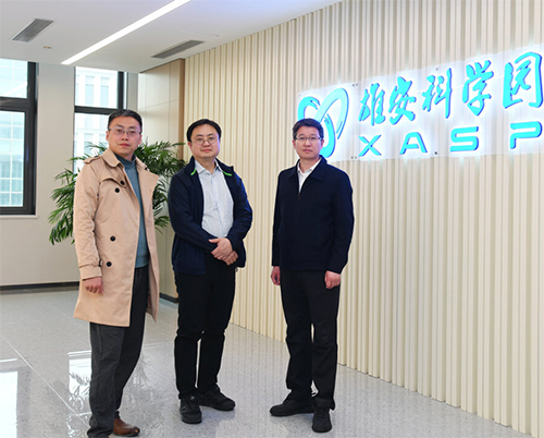 3月25日,马扬飚(中)、王玉柱(右)、王坚(左)在雄安科创中心。赵荣昊 摄