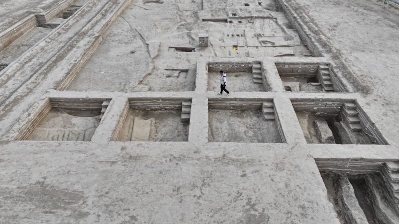 这是雄安新区南阳遗址考古发掘现场(3月26日摄,无人机照片)。新华社记者牟宇 摄