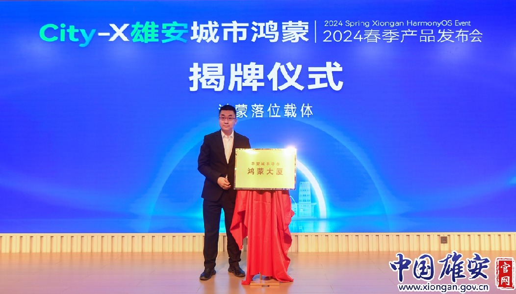 中国雄安集团城市发展投资有限公司副总经理杨宇为鸿蒙落位载体揭牌。李达 摄