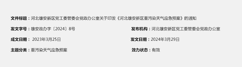 河北雄安新区党工委管委会党政办公室关于印发《河北雄安新区重污染天气应急预案》的通知