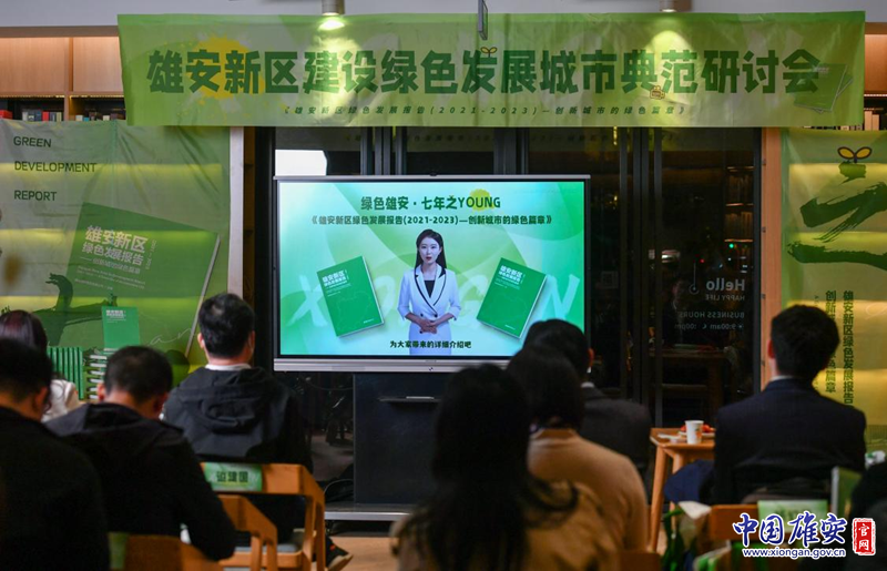 在新书发布环节,由雄安绿研智库主编的系列书籍《雄安新区绿色发展报告(2021-2023)——创新城市的绿色篇章》重磅亮相。雄安绿研智库有限公司综合与推广中心总监赵聪颖巧妙将ai技术与新书发布相融合,运用ai主播分享雄安绿研智库编写该书的初心,介绍章节亮点。