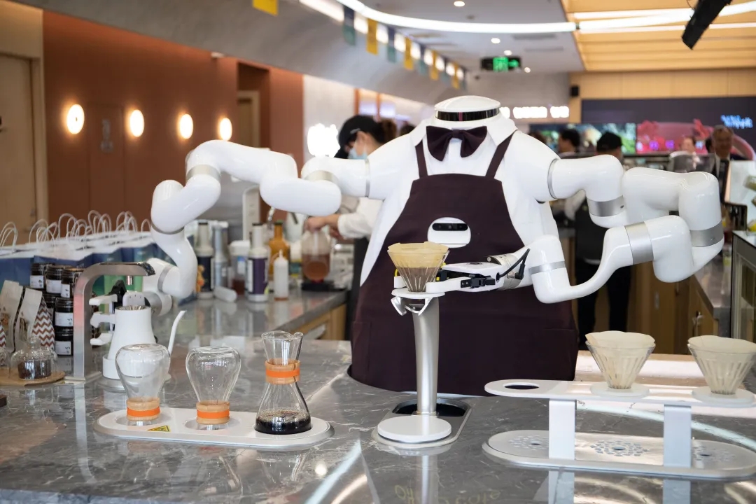 在雄安新区,“AI咖大师”机器人在制作咖啡。