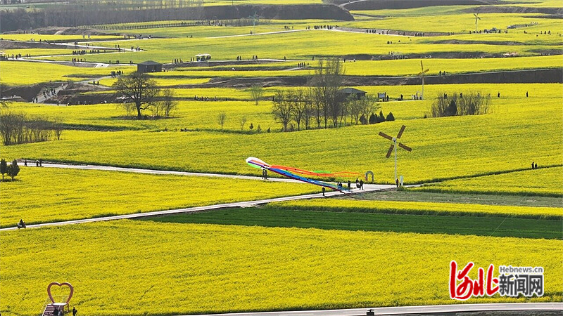 蓝天丽日,春和景明。4月4日,雨后初霁的河北省沙河市红薯岭景区车水马龙,众多游客争相赶来,只为一睹万亩油菜花这耀眼的金黄,一嗅这沁人心脾的芬芳。