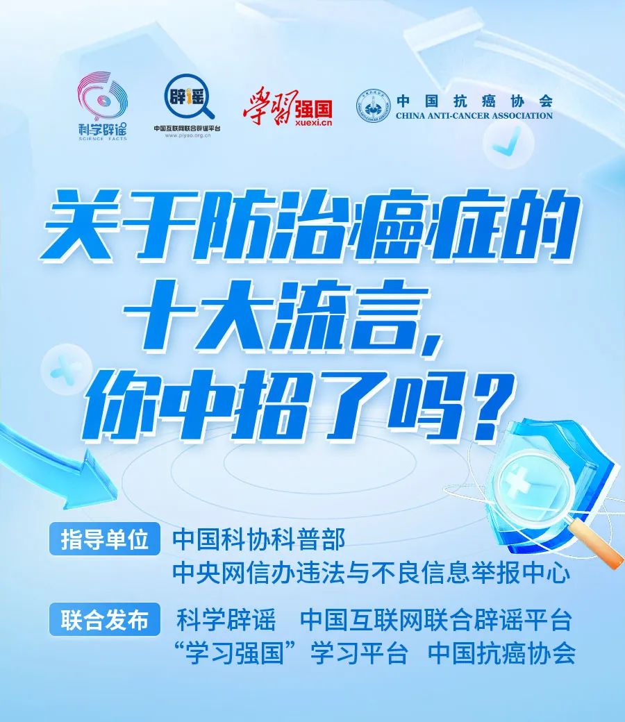 今天,科学辟谣联合中国互联网联合辟谣平台、“学习强国”学习平台、中国抗癌协会,针对 10 个广为流传的有关“防治癌症”的流言进行解读,快看看你中招了没?