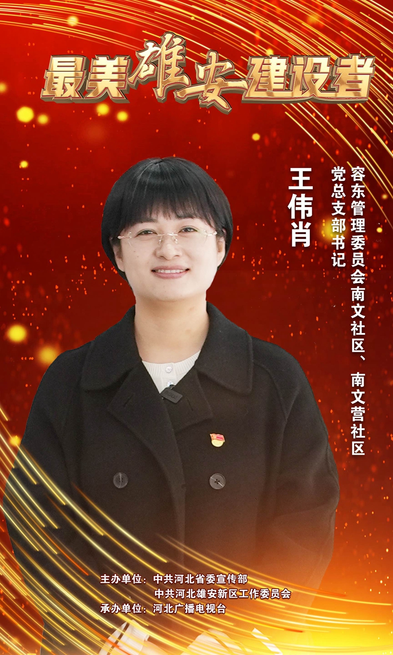 南文营社区是雄安新区首批回迁安置社区。2023年5月10日,习近平总书记在容东片区南文营社区考察时强调:“建设好雄安新区,重要的是衔接好安居和乐业,让群众住得稳、过得安、有奔头。”作为一名社区基层干部,王伟肖始终牢记总书记的嘱托,坚定不移把总书记的深情厚爱落实到千家万户,认真负责、用心用情用力服务居民,为群众办实事、解难题,用实际行动推进基层社会治理,提高社区治理效能。在她的带领下,南文社区、南文营社区回迁交付工作顺利完成,6759套安置房如期交付。1.3万余名居民入住新居,在新社区开启美好新生活。