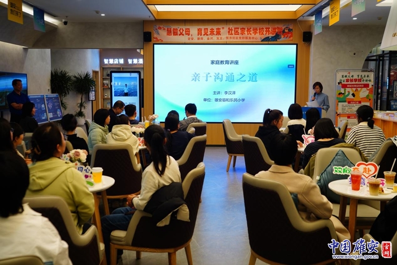 雄安容和乐民小学校长李汉泽为家长、学校带来第一堂课——“亲子沟通之道”,将家庭教育经验分享给家长,引导家长们科学育儿,通过自身经验教育家长如何做智慧父母,助力孩子快乐成长。家长们踊跃举手,就自己的育儿困惑进行提问,李汉泽对家长们的提问进行了解答。此外,为迎接世界读书日的到来,社区“家友好书”读书会同步启动,李汉泽为家长推荐一系列书籍,鼓励家长做学习型父母,引导形成书香家庭、“书香容东”的良好氛围,让家长在互动交流中学习育儿知识。