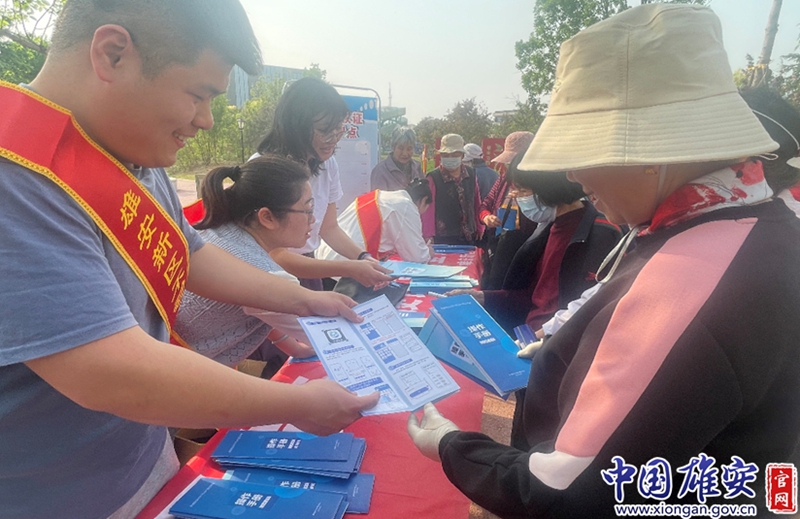 工作人员在容城县宪法公园为群众讲解不动产登记网办流程。中国雄安官网发
