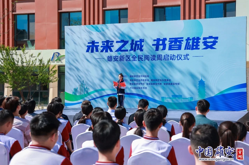 启动仪式上,容西云溪小学学生代表宣读《雄安新区2024年全民阅读倡议书》。中国雄安官网发