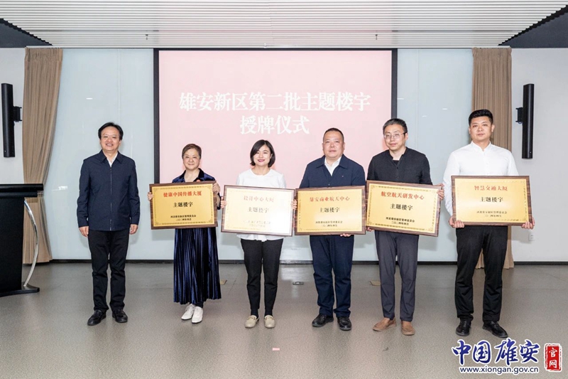 此次授牌的主题楼宇分别位于雄安新区启动区、高新区、容东片区,包括雄安商务服务中心健康中国传播大厦、华望城设计中心大厦、电建智汇城雄安商业航天中心、雄安创新研究院航空航天研发中心、中交未来科创城智慧交通大厦等5栋。