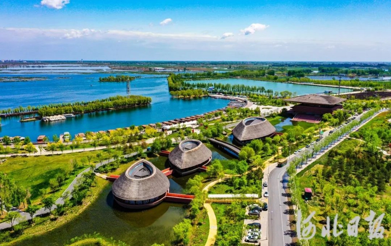 4月23日,航拍雄安新区白洋淀旅游码头。在科技的助力下,白洋淀生态环境持续向好,水质大幅度提升。河北日报记者耿辉 摄