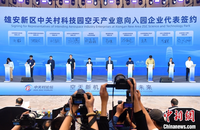 雄安新区中关村科技园空天产业意向入园企业代表签约现场。中新社记者韩冰 摄