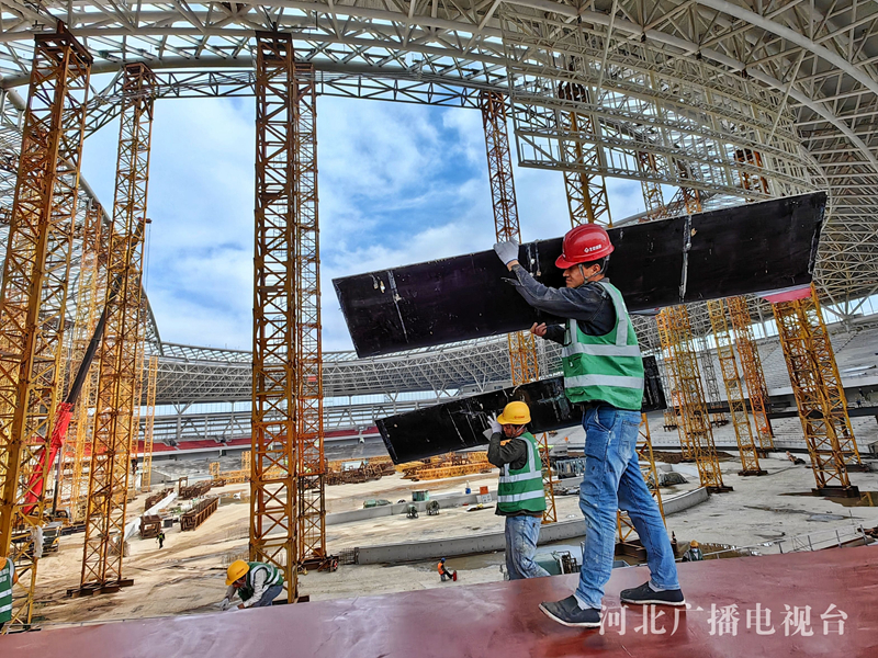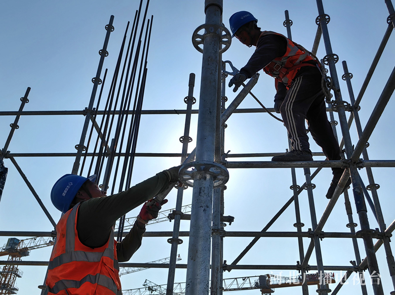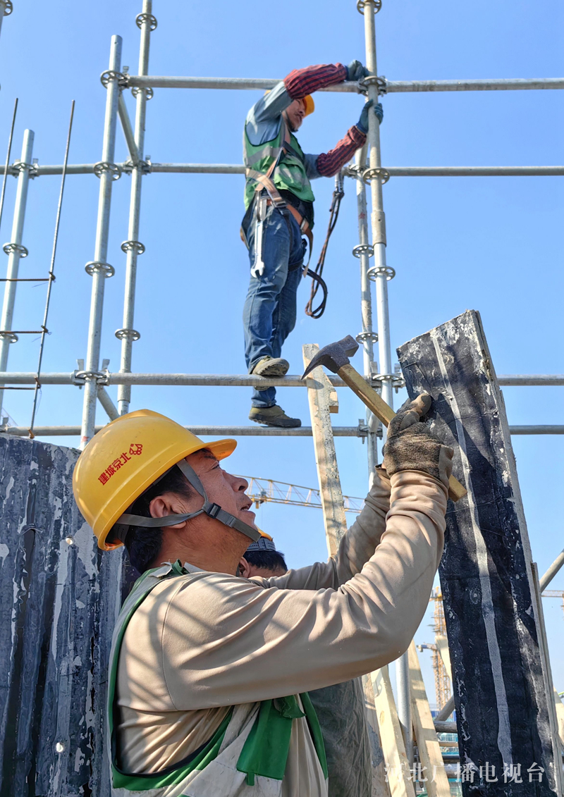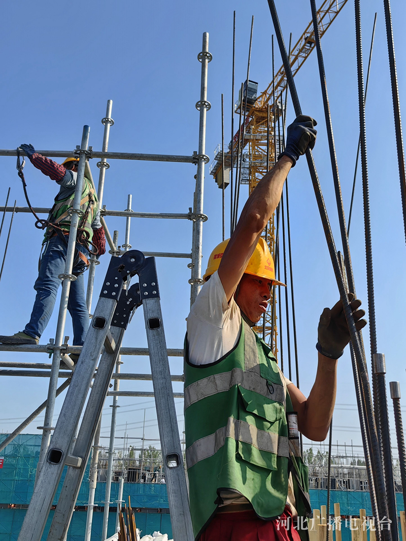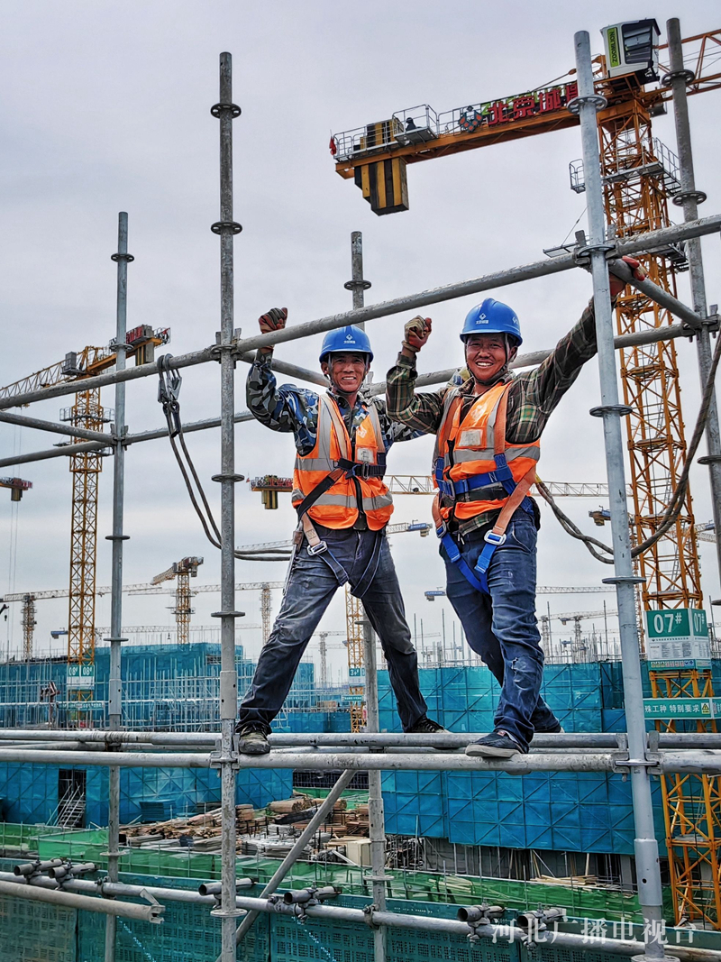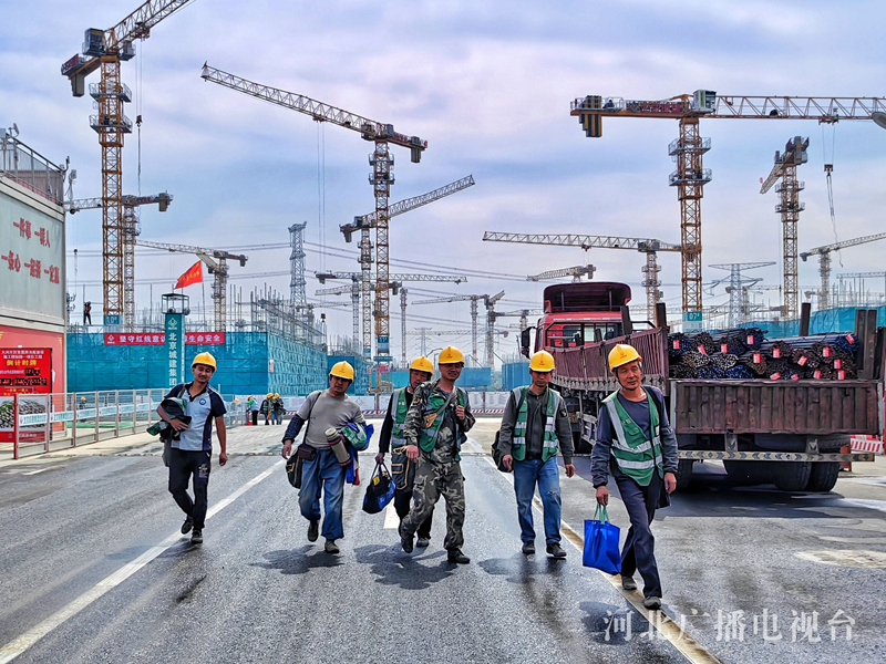 “五一”假期,在雄安新区塔吊林立的建设工地上,数万名建设者以劳动的方式度过自己的节日。在雄安体育中心和大河片区安置房标段一项目施工现场,记者用镜头记录下热火朝天、繁忙有序的施工场面。(河北台 李辉)