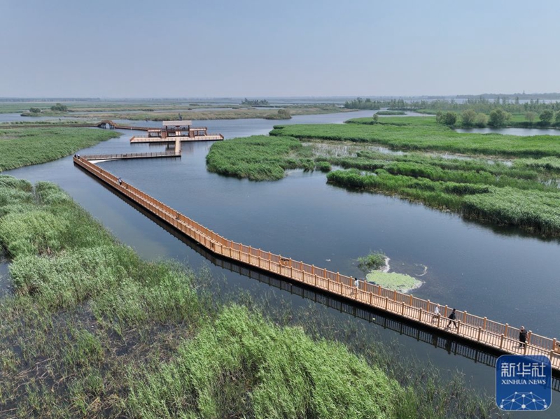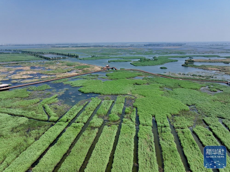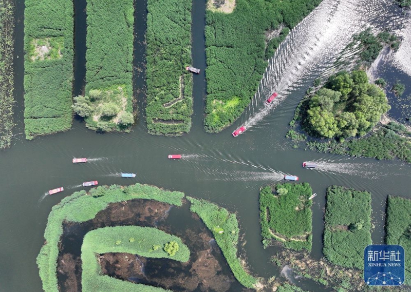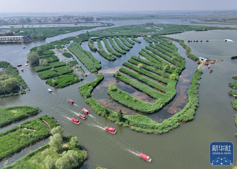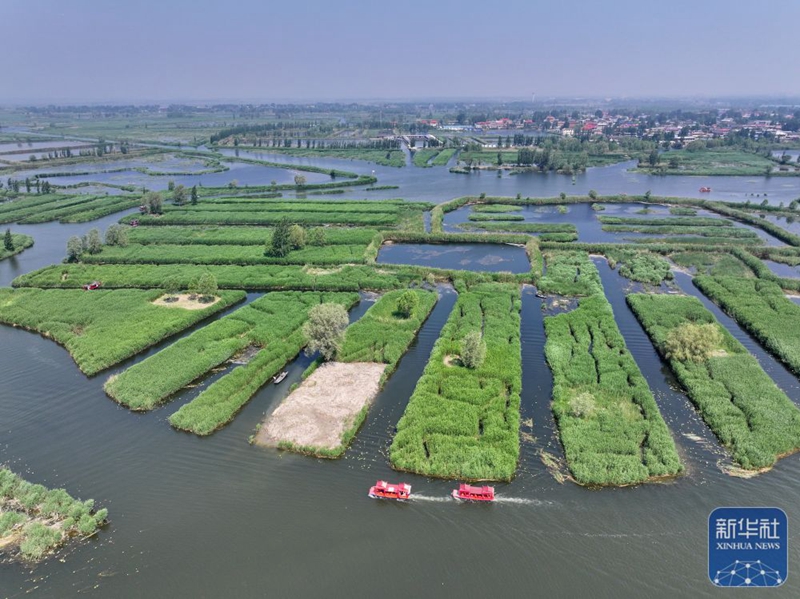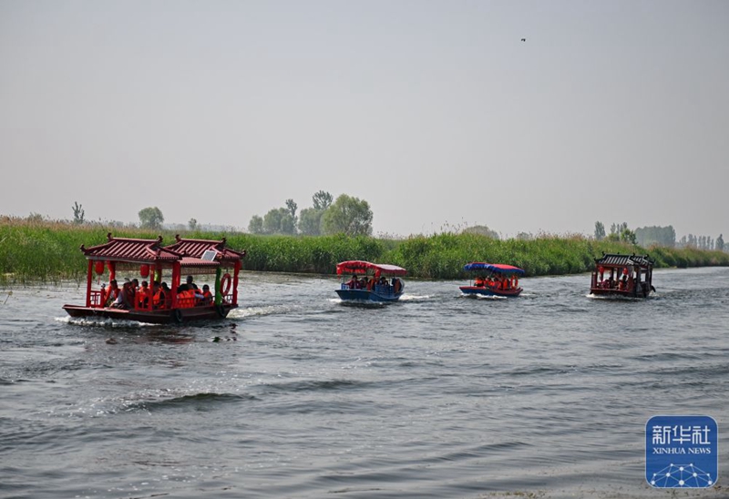 初夏时节,河北雄安新区白洋淀内天蓝水清、芦苇鲜绿,游船往来穿梭,构成一幅“城淀相依、共生共融”的美丽画卷。近年来,河北坚持系统治理,加强白洋淀生态修复保护,截至2023年,白洋淀水质连续三年保持Ⅲ类,重现“华北明珠”风采。(记者牟宇)