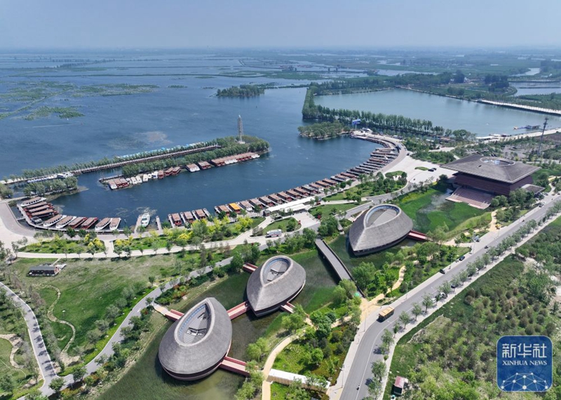 这是雄安新区白洋淀旅游码头景色(5月8日摄,无人机照片)。