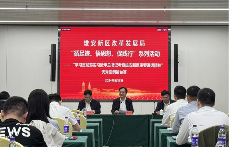 2023年5月10日,习近平总书记第3次到雄安新区考察,主持召开高标准高质量推进雄安新区建设座谈会并发表重要讲话,极大地激励和鼓舞了新区广大干部群众的信心和斗志。为学习贯彻习近平总书记重要讲话精神,雄安新区改革发展局组织开展“循足迹、悟思想、促践行”系列活动,通过专题学习会、主题党课、擂台赛、实践活动等形式确保手脑心并用、学思用贯通,完成了重温讲话、学习条例、分享案例、重走足迹、总结心得5个系列活动。