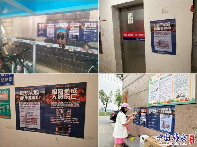 工作人员在显著部位张贴电动自行车消防安全宣传海报。中国雄安官网发