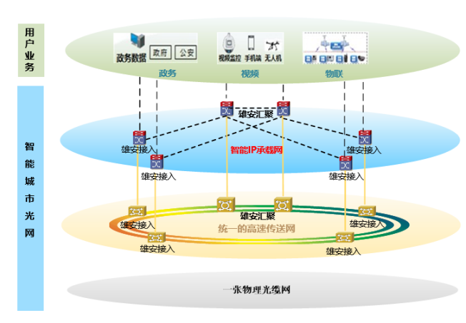 面向能源、燃气、电力、综合管廊等城市生命线工程,运用全光组网和IPv6技术,打造高速泛在、云网融合、安全可信的城市专网。