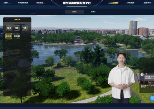 结合CIM与AI技术,构建雄安新区3D地图,利用智能语音、RAG知识库、大型预训练语言模型及数据库,实现沉浸式3D数字人讲解和场景交互。