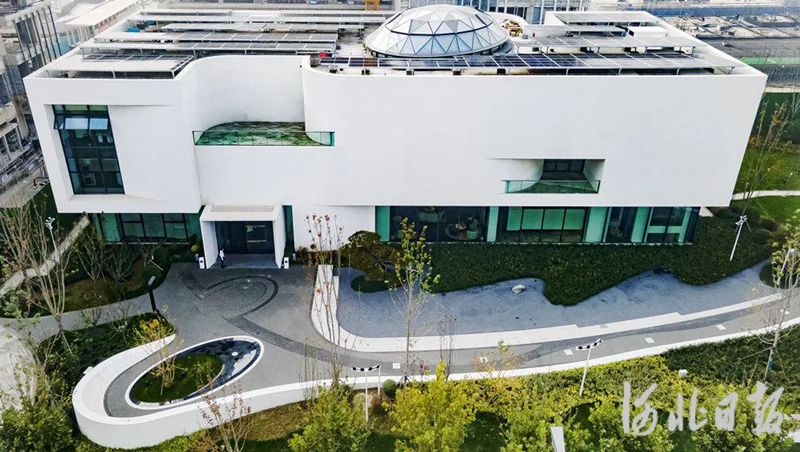 雄安绿色建筑展示中心平台绿化景观。新华社发