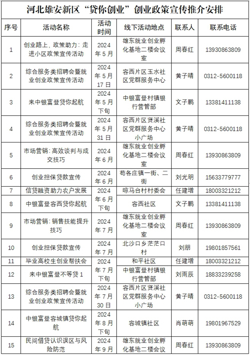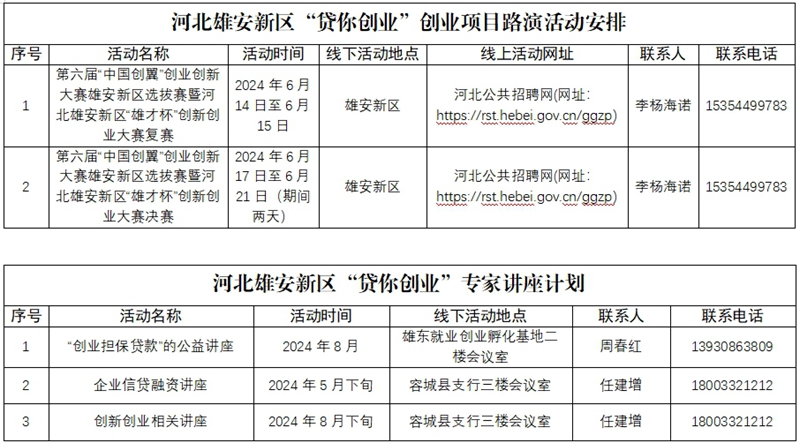 中国雄安官网5月17日电 为进一步优化创业环境,提升创业服务质量,增强新区群众创业创新能力,促进创业带动就业,助力新区打造创新创业热土,雄安新区公共服务局拟组织开展“贷你创业”助力行动。现将雄安新区2024年创业项目路演活动安排、专家讲座计划、创业政策宣传推介安排予以公布,欢迎社会各界积极参与。