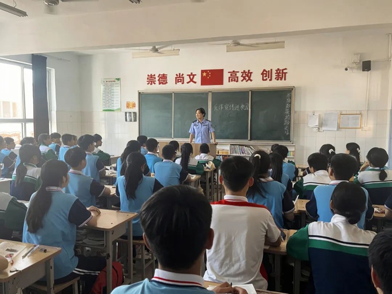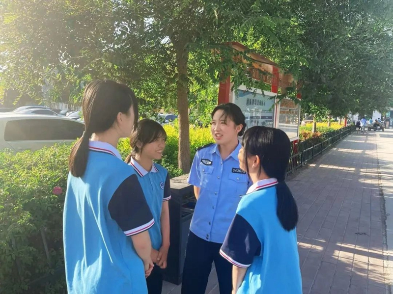 如何提升辖区群众的反诈意识,最大程度降低群众被骗风险,也是杨林佳每天会思考的问题。她认为做好青少年的反诈知识科普不仅能提高他们自身的反诈意识,更能通过他们提高家里人的反诈意识。因此,杨林佳和同事们定期都会到学校开展有针对性的反诈宣传课程。