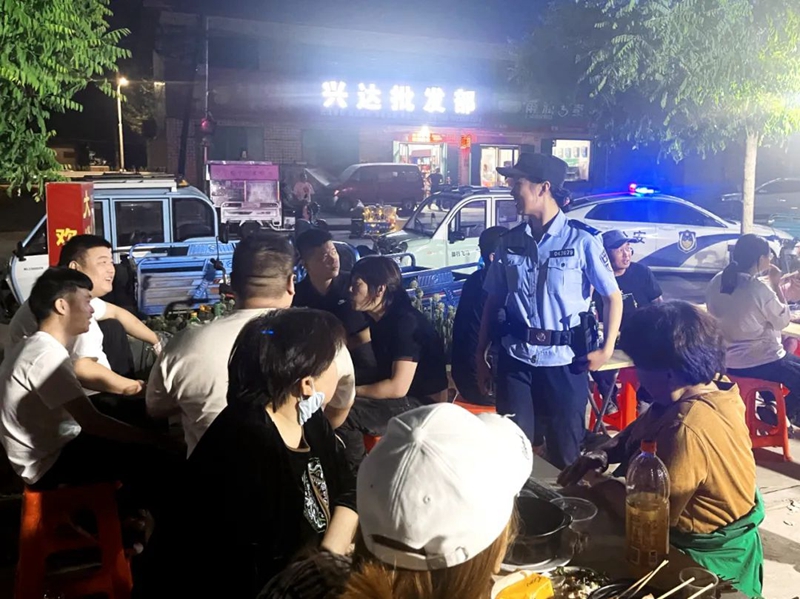 "大哥,咱喝了酒可一定不能开车哈。"晚上7点,杨林佳又和同事们来到辖区内的露天餐饮摊位,与食客们唠嗑。通过面对面宣讲、发放宣传单以及和群众互动的方式,宣传交通违法行为的危害,普及交通安全知识,为食客们送上"交通安全夜宵",引导群众杜绝交通违法,安全文明出行。