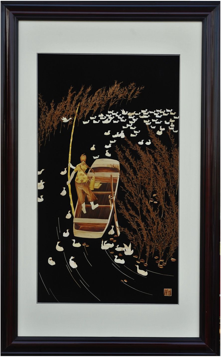 这是杨丙军创作的芦苇画作品《牧鸭女》。新华社发