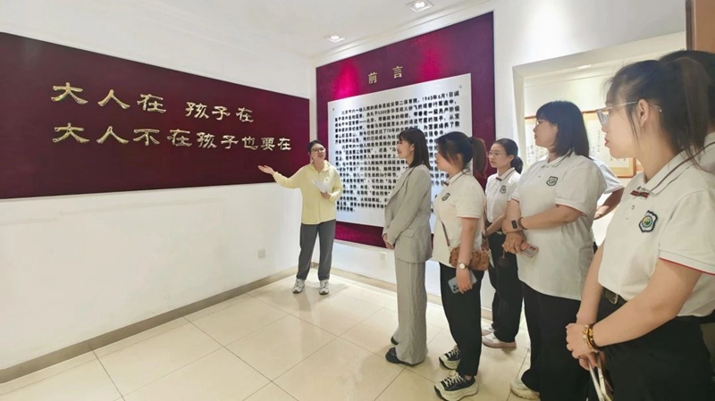 迎着和煦的阳光,雄安容和容德幼儿园一行走进北京市六一幼儿院。在院史馆内,志愿讲解员通过对一件件珍贵的历史文物和照片声情并茂的讲解,展现六一幼儿院从延安到北京的红色历史经历。园所到处都是孩子们快乐玩耍的身影。老师们进行了研讨交流。