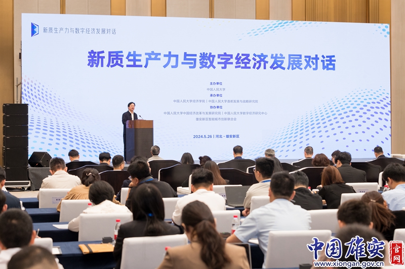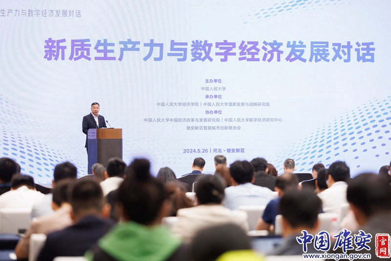 张东刚在致辞中表示,建设雄安新区,是习近平总书记亲自决策、亲自部署、亲自推动的重大战略,是千年大计、国家大事。雄安新区取得的不凡业绩,根本在于有以习近平同志为核心的党中央掌舵领航,有习近平新时代中国特色社会主义思想指引航向,是中国特色社会主义制度的集中体现和中国式现代化的生动实践。立足新时代,以数字经济培育新质生产力,为助力高质量发展蓄势赋能,既是贯彻落实习近平总书记对新质生产力与数字经济发展重要论述的应有之义,更是助推中国式现代化建设、塑造发展新动能新优势的战略实践。希望与会各界以此次对话为契机,从雄安出发展望未来,以理论研究为基石,坚持夯基础、做示范,深入阐释党的创新理论的科学内涵;以科技创新为驱动,坚持立前沿、勇突破,服务国家高水平科技自立自强;以高水平人才为支撑,坚持育新人、强支撑,打造重要人才中心和创新高地。中国人民大学愿与各界加强合作,不断畅通教育、科技、人才的良性循环发展新质生产力,为雄安新区建设成为高质量发展的人民之城、未来之城注入新动能,在以中国式现代化全面推进中华民族伟大复兴的光辉事业中贡献更大力量。